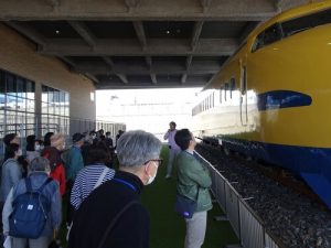 講師としてトレインパーク白山のセンター長である、小山一徹氏に案内していただいた。トレインパーク白山の5階展望フロアで北陸新幹線が走り抜ける様子を見た後、4階の白山総合車両所内を見ることができるフロアに移動した。車両所内の作業を日常的に見ることができる施設というのは、日本でもここだけで非常に珍しく、新幹線が安全に走るために働く人々のことも説明され、参加者は大いに頷いていた。そして、1階の北陸新幹線について学ぶフロアでは、壁面の地図や表示の解説のほか、パンタグラフや車輪など実物の説明など、詳細かつ、センター長のユーモアあふれる解説であっという間に時間が過ぎていった。最後に、この夏から展示されたドクターイエローについても紹介があり、パークを満喫していただける内容であった。講義終了後も質問をされたり、再びパーク内をゆっくり見たりする参加者も多く、本講座は非常に有意義なひとときとなった。