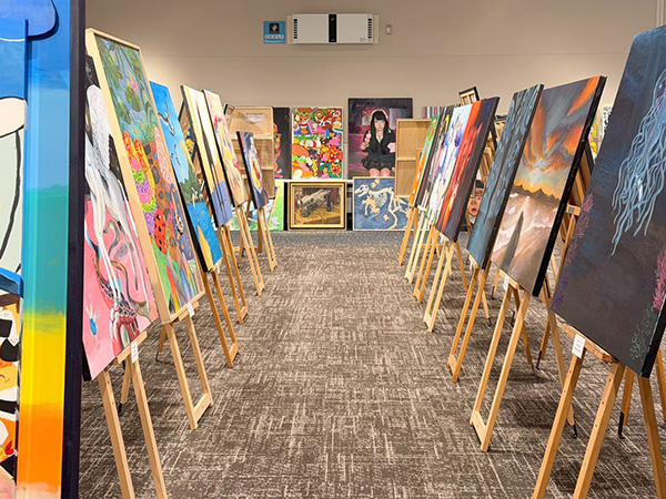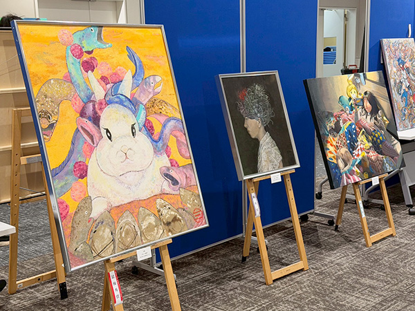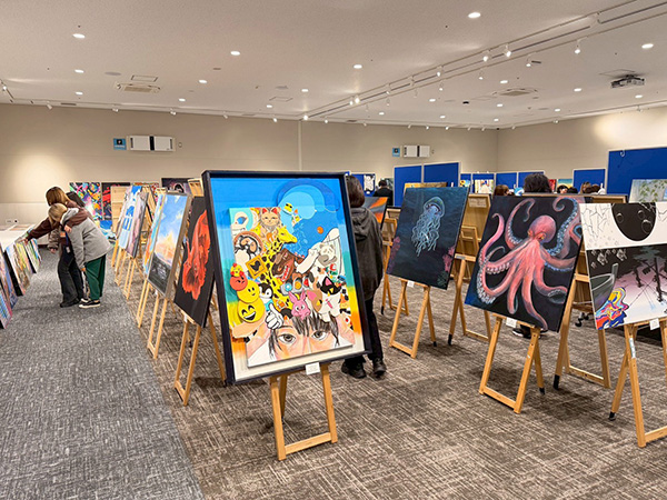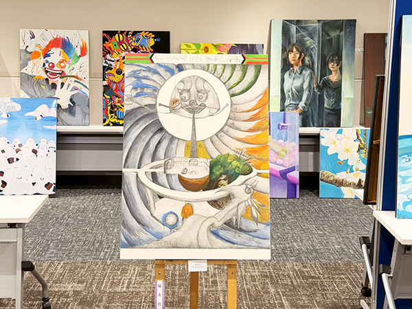 今回は特に、アナログ画材による大型作品の出品が多く、日頃の美術部活動における挑戦的な制作姿勢や、それを支える先生方の熱意が強く感じられる展示となりました。
