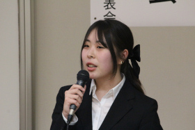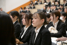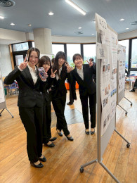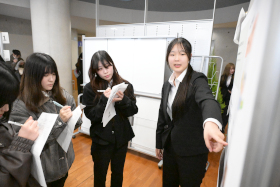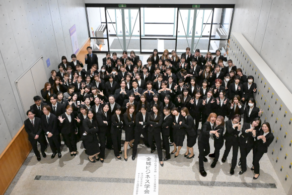 金城ビジネス学会では、ビジネス実務学科の2年生が1年間にわたって行った研究活動の成果を発表します。研究活動は産業界や地域の団体の協力を得ながら行っており、夏には5分科会に分かれて「中間発表会」を行いました。今回の発表会は1年間の集大成です。