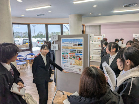 全発表終了後、別会場でポスターセッションを行いました。1年生は、聞けなかった発表の説明を受けたり、興味を持った発表の動画やアプリケーションソフト等の成果物を見たりしました。年度が明けた4月からは、1年生が新2年生に進級し、新しい年度のゼミ活動を行います。