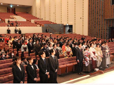 3月18日(水),金城大学・金城大学大学院卒業証書・学位記授与式終了後、白山市松任文化会館ピーノ大ホールにて医療健康学部卒業証書授与式・大学院学位記授与式を行いました。理学療法学科16期生65名、作業療法学科10期生23名が教員の見守る中,晴れの門出の日を迎えることが出来ました。また、金城大学大学院修了生5名に修士号が授与され、未来へと羽ばたきました。